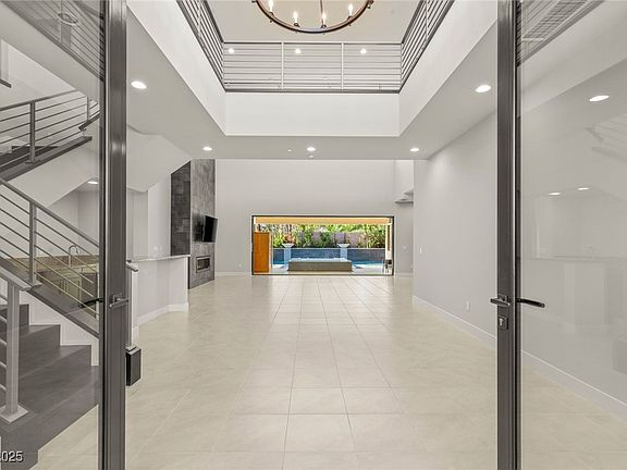 Indulge in an extraordinary Lake Las Vegas lifestyle with this 5,000± SF architectural masterpiece in the prestigious, guard-gated Lago Vista community. A dramatic pivoting glass entry door sets the tone for interiors defined by soaring 2-story ceilings, a striking floating staircase, and an artfully designed wet bar. The chef’s kitchen is a culinary showpiece, showcasing a custom waterfall island and premier appliances, flowing seamlessly into a sophisticated dining room. The first-floor primary suite offers a serene retreat with a spa-inspired bath, while three additional guest suites and a loft provide uncompromising comfort. Disappearing pocket doors erase boundaries between indoors and out, unveiling a covered lounge, resort-style pool & spa, and a fully appointed outdoor kitchen with a swim-up bar. Residents enjoy exclusive access to a private beach and cabanas, creating a rare blend of resort luxury and intimate privacy—perfect for those who expect nothing less than exceptional.