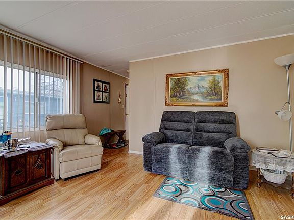 Checkout this affordable starter or retirement home in a quiet trailer park North of Regina. Location is close to all amenities. This property boasts a huge yard with a huge shed in the back, providing plenty of storage. Furnace is newer, but the central air is older - the seller says it works like a charm. Some renovations have taken place over the years and property appears solid and very clean. Move in condition! Seller is willing to leave some furniture behind. Quick possession is available. Master bedroom is quite large as the trailer was a 3 bedroom and could be converted back. This home could also be a revenue home. Property is priced to sell with a quick possession.