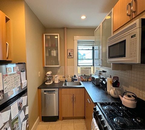 The unit is located in Allston Village steps from Harvard Station and the Long Avenue/Griggs Street T stops on the Green B Line as well as the #66 and #57 bus lines. The building is located on a tree-lined street with a residential feel, but is just around the corner from all sorts of commercial action. Many pubs, restaurants, storefronts and grocery stores are within a short distance.