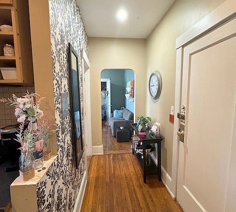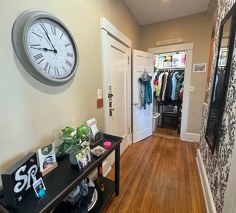 The apartment is on the second floor of a well maintained condominium building. Has updated kitchen and bath, hardwood floors, high ceilings throughout, and 2 very large closets; one in the living area and one in the entryway. The kitchen features stainless appliances, dishwasher/disposal, plenty of counter/cabinet space, under cabinet lighting, gas cooking, and built-in microwave.