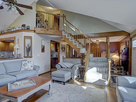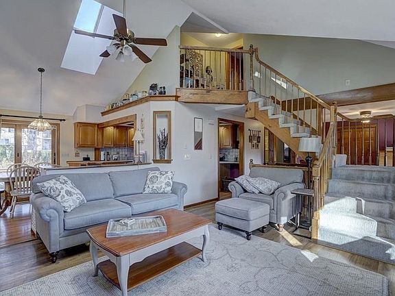 Great home in great location. Upgrades throughout this property. The exterior offers an oversize driveway, brick walkway, large private yard with a deck, patio and storage shed. Enter this open and inviting home perfect for entertaining. The living room offers a cathedral ceiling, skylight, bay window and wood fireplace with blower and a brick/wood mantel. The kitchen with dining area has wood flooring, stainless steel appliances, recessed lighting and sliders to the back yard. Also located on the 1st floor are two generous size bedrooms, one with a 1/2 bath and the main bathroom with tub/shower hardtop vanity and tiled flooring. The 2nd floor offers a lofted space at top of steps perfect for a desk/workstation and the large master bedroom with tongue and groove wainscoting walls, good closet space, wood and carpet flooring and a master bath with a jacuzzi soaking tub, separate shower and tiled floor. The lower level offers a family room with built ins, laundry room and tons of storage