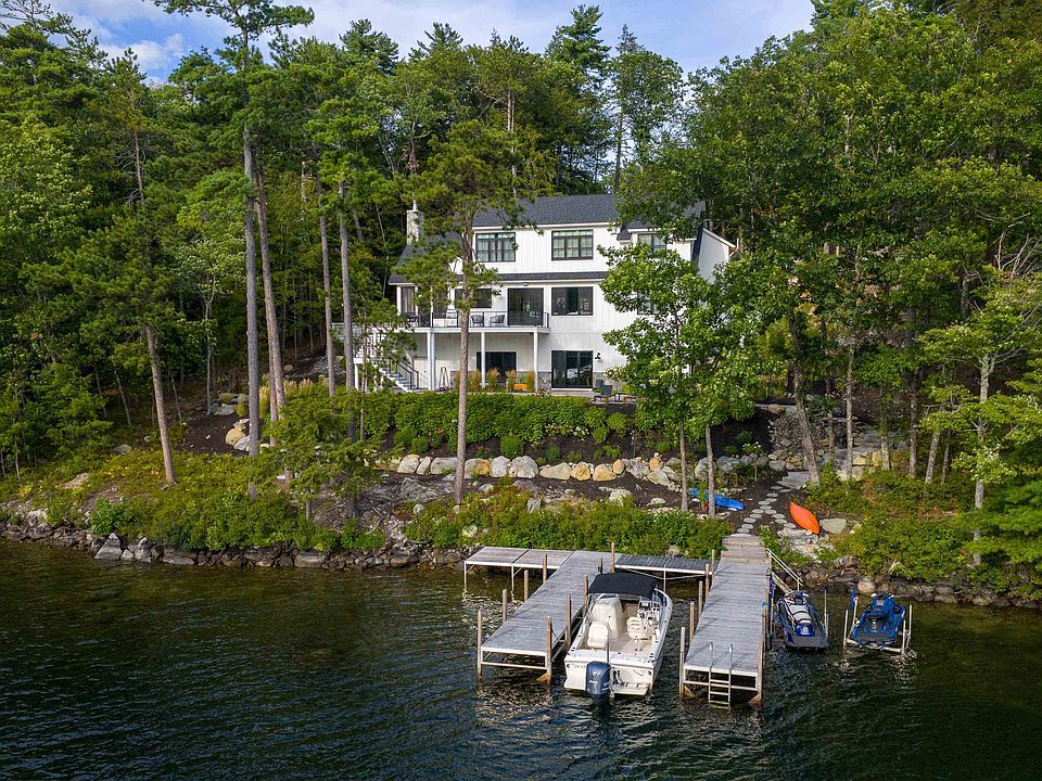 Set on nearly an acre with 201 feet of pristine Lake Winnipesaukee waterfront, this exceptional 3 year young custom residence offers a rare blend of privacy, craftsmanship, and effortless lake living. Perfectly positioned just 10 minutes by car or boat to Meredith’s shops and dining, the setting feels secluded yet remarkably convenient. Soak in breathtaking sunsets and serene views toward protected Stonedam Island—ensuring lasting natural beauty. Every detail was meticulously designed. The home offers nearly 5,000 finished square feet of refined living space with 5 bedrooms plus a bunk/bonus room, finished lower level and 7 baths. Gleaming wood floors flow through an open-concept layout anchored by a stunning kitchen featuring quartz countertops, a butler’s pantry, and seamless connection to the living room with a gas fireplace framed by dramatic stonework. Enjoy an expansive screened porch with a wood-burning, floor-to-ceiling stone fireplace, ideal for 3 season entertaining. The exterior is equally impressive with exquisite landscaping, lush lawn, mature plantings, irrigation, lighting, patios, fire pit and deck overlooking the water. Enjoy crystal-clear water, a sandy bottom, and a U-shaped docking system accommodating three boats plus jet skis and water toys. A whole-house generator provides peace of mind. Offered fully furnished with minimal exclusions, this is a true turnkey opportunity.