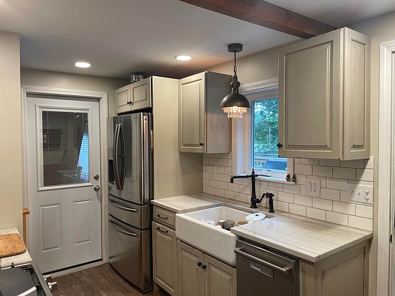 stainless appliances and recessed lighting. Bathroom