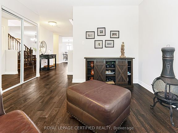 Welcome to this beautiful 2-storey all-brick detached home, thoughtfully designed for both style and functionality. Offering 4 spacious bedrooms and 4 bathrooms, this property provides plenty of room for family living and entertaining. The heart of the home is the modern kitchen, complete with a centre island, quartz countertops, and stainless steel appliances, seamlessly overlooking the family room ideal for gatherings. A separate dining room and living room with hardwood floors create the perfect balance of elegance and comfort. The main floor laundry room provides access to the double car garage for added convenience. Upstairs, retreat to the massive primary bedroom featuring a luxurious 5-piece ensuite. The finished basement extends your living space with a huge recreational room, 3-piece bath, and cold cellar. Outside, enjoy landscaped grounds with a cement patio, walkways, and curbs, highlighted by exterior pot lights for modern curb appeal. This home is the perfect blend of comfort, functionality, and timeless design ready to welcome its next family.