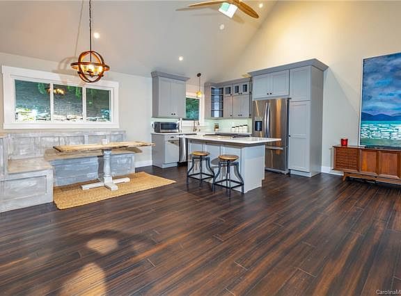 Absolutely meticulous; recently renovated, 2 BR, 2 BA home in Knob Creek. Just minutes from downtown Brevard. New roof, gutters, flooring, kitchen, bathrooms, and fabulous screened porch make this a great choice.