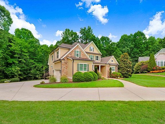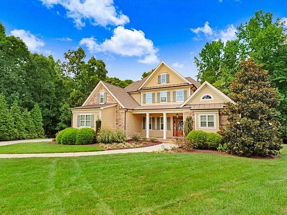 Enchanting Custom Home in Gated Pineville West. Discover a serene oasis in this exquisite 4 bedroom, 3 bath custom home nestled on a .82-acre wooded cul-de-sac lot within the desirable gated community of Pineville West. Boasting approximately 3,029 square feet of elegant living space, this meticulously maintained home offers a perfect blend of comfort and luxury. Inside, you'll be captivated by stunning living areas adorned with gleaming hardwood floors and charming transom windows. A focal point of the home is the elegant fireplace surrounded by custom built-ins and exquisite trim work. The gourmet kitchen is a chef's dream, featuring a furniture-style island, glass tile backsplash, granite countertops, and top-of-the-line stainless steel appliances. The main level owner's suite is a private retreat complete with a spacious sitting area and a spa-like bathroom offering dual vanities. A guest suite is also conveniently located on the main floor. Upstairs, you'll find two additional bedrooms and a generous bonus room, perfect for a home office, playroom, or media center. Enjoy peaceful mornings or relaxing evenings on your inviting front porch or screened-in porch, overlooking the beautifully landscaped yard and wooded backdrop. Experience the epitome of refined living in Flowers Plantation, where you can work, play, and live life to the fullest