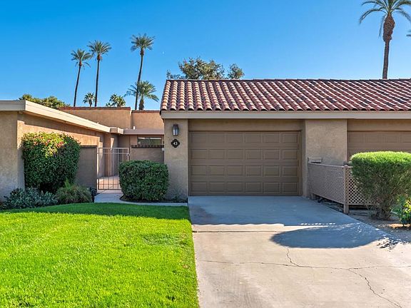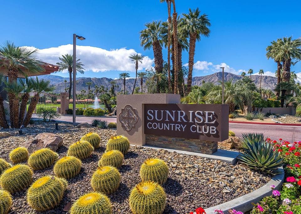 Welcome to Sunrise Country Club - where resort living meets genuine community.Sunrise Country Club is a private, member-owned and operated community known as one of the friendliest and most inclusive clubs in the Coachella Valley. Snowbirds, members, renters, and year-round residents all enjoy its relaxed, resort-style atmosphere and welcoming spirit.Perfectly located, SCC is less than a mile from the fabulous dining and shopping at The River, and only minutes to trendy El Paseo, Westfield Mall, the McCallum Theatre, Rancho Mirage Park, Library, and its new planetarium - plus Palm Springs International Airport. SCC is a guard-gated community with 746 residential condos, an 18-hole golf course, 9 championship tennis courts, 10 Pickle Ball courts, 21 swimming pools and 19 spas. Club amenities include golf, tennis, fitness center, clubhouse dining room & grill at discounted prices. This charming Granada Model offers gorgeous golf course views from the back patio and beautiful mountain and tree views from the kitchen and front courtyard. Updates include a newer HVAC system, water heater, and flooring, as well as a new bed in the primary bedroom. Plantation shutters add a touch of classic elegance throughout.Furnishings are available outside of escrow, making this home move-in ready for the next fortunate owner.