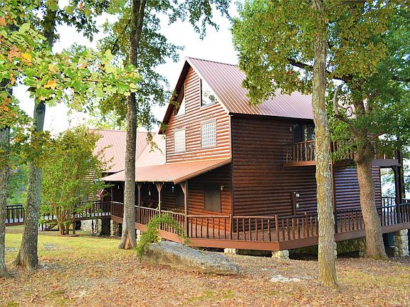 Lakeside luxury can be yours in this immaculate, two-story custom cabin perched on a bluff with sprawling views of Hugo Lake beyond. As if the view isn't enough, the detail that has gone into this home, inside and out, is amazing.