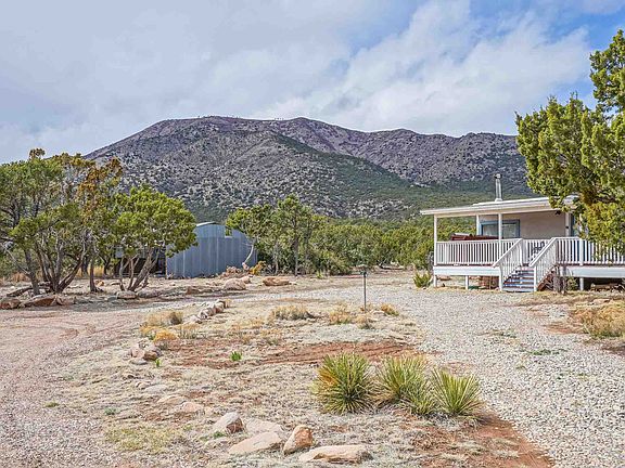 This New Mexico country home on 5 acres is located just north of Edgewood in Santa Fe County. The 2-bedroom,1-bath home sits at the base of South Mountain where the sunsets are magnificent and the views of the Estancia Valley are expansive. The large front deck is the perfect place to enjoy a summer evening. The home has a newer rolled roof and updated tile in the kitchen and bath. The property is fully fenced and gated and the backyard is setup for gardening or corralling small animals. There is a 12x24 storage shed that is well insulated, has a workbench and a waterline close by. The barn needs some TLC and could be a nice horse barn and shop area that has 220 wiring in place. This is a beautiful area for living the country lifestyle on a horse property with amazing views. Albuquerque on I40 is less than 30 minutes away and Santa Fe is about 50 minutes north.
