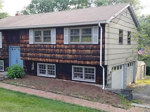 Great home with open floor plan! Living Room with large bow window overlooks gorgeous front yard! This home has beautiful views from every window. Kitchen and dining room share a breakfast bar. Most windows are insulated thermopane. Nice insulated sliders on both levels. Dining room slider leads to newly painted deck. Awesome heated family room on lower level with fireplace and sliders to back yard. 1/2 bath and laundry room on lower level next to family room. Two car garage and paved driveway. Home has hardwood floors throughout and is in good solid shape. Could use some updating and fresh paint to bring back its former glory. Great home to build equity and eligible for all government financing!