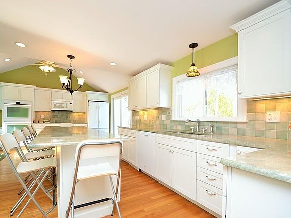 Come see this attractive 3 bed/3 bath Cape style home! Large renovated kitchen with custom cabinets, double oven, center island seating for 8 to 10. Sliding glass doors from kitchen to large patio. Living room has a beautiful tiled fireplace and ceiling fan. Recessed lighting from kitchen into living room, with oak flooring. Small dining room or perfect for home office. 2nd floor has a large master bedroom, wood floors and two other bedrooms all with plenty of closets, newer Jacuzzi bathroom. Finally, the basement is finished with two large rooms( family room and extra room for bedroom) full shower bath in basement with walk out door to yard. Central A/C, Attractive yard with Koi pond stocked with various sizes of fish year round. Solar panels on roof make the electricity bill extremely low. House backs up to Rt 93 but far enough away that you can't hear it from inside; in the winter with the trees bare you can just about hear it. A sound barrier is being discussed by Officials.