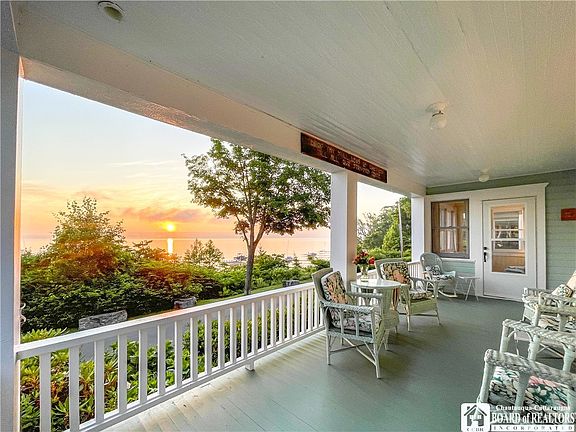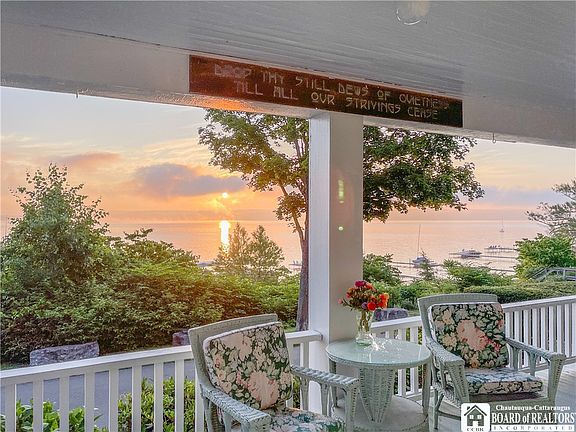 It is always an honor to have the opportunity to work with Chautauquans on the sale of their properties– this one is a very special one too. For over 60 years, sitting on the porch OR sunroom OR 2nd fl porch OR the lakeside interior rooms has been magical! Tall ceilings, many windows, bedroom sinks, and original wood flooring are just a few of the interesting architectural details. Yes, it is time for a needed paint job and other updates but it is obvious that this home has hosted many to enjoy the Lake, Grounds, and the Chautauqua experience. A 28’x14’ living room overlooks a large porch and the Lake. The sunroom is divine and the porch is perfect for relaxing and dining. The Dining rm has a grand feeling with a window angled to the Lake, the eat-in kitchen with exterior access is dated but well equipped. Laundry is adjacent. The rear parlor with powder room could be converted to a 1st flr BDRM. On the second floor are 5 BDRMS – two with direct lake views. The primary bedroom is ensuite, a guest rm has a powder room and there is a large guest bath on the hall. On the 3rd flr are 2 Bedrms, (one currently used for storage) and a bath. Parking. Some heat and AC.