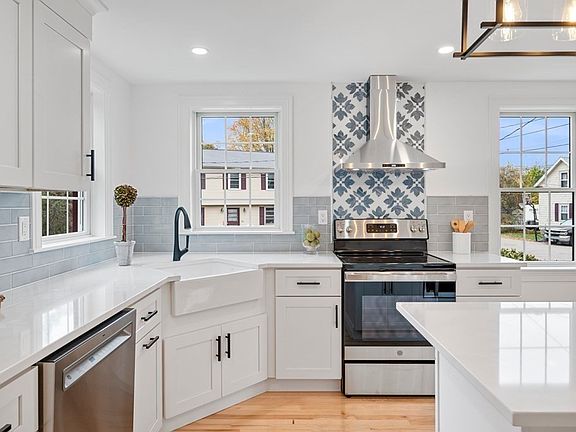 First showings OH! Welcome to your NEW COMPLETELY RENOVATED home sitting on a corner lot located on a quiet DEAD END street. This sun drenched 3 bed/2.5 bath checks off all the boxes. Main floor with Open concept living room/Dining/Kitchen featuring quartz countertops, shaker cabinets, artisan tile backsplash, SS appliances & island perfect for holiday entertaining! Laundry & tiled half bath complete first floor. Second floor with 2 large bedrooms and full bathroom with tiled tub & shower. Step up to your EN-SUITE primary bed oasis! Primary bathroom with double vanity & designer tiled shower. Large bedroom to fit king size bed & sitting area for to work, studies or relaxation.Sliding door with WATER VIEWS. Quality construction with NEW Energy efficient HVAC, Electric, Plumbing throughout, floors, appliances, Roof, Siding, foam insulation, Andersen windows. LARGE fenced exclusive use yard & driveway. PET FRIENDLY! Private basement. COMMUTERS DREAM. Close to major highways & Shopping