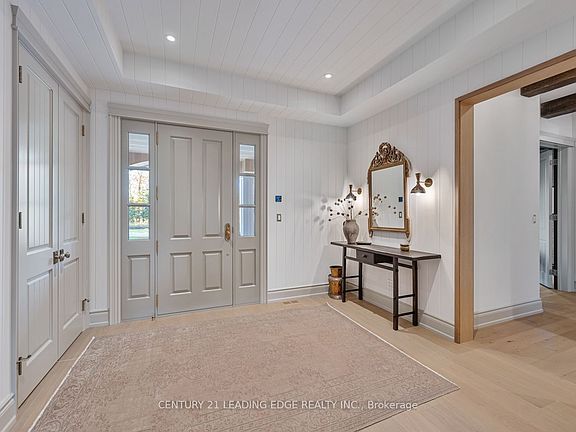 Walk-up basementPremium wall finishesDistinctive tile workDramatic beamed ceilingsStatement light fixturesFormal conservatorySpacious dining room