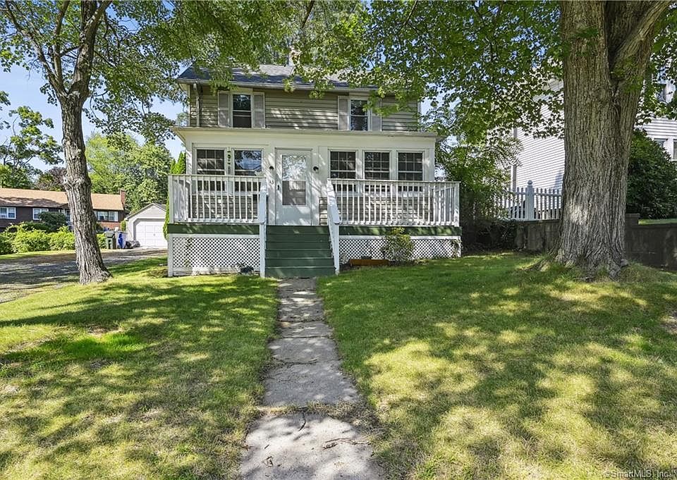 Welcome to 43 North Street, a charming colonial-style home situated in the quaint town of Windsor Locks, CT. This 1925 two-story home boasts 1056 square feet of living space on .34 acres. As you enter, you’ll be taken by the original Red Heart Pine floors, which adds an elegant touch of character and nostalgia to the open concept living space of the first floor. Just through the bright, cozy living room you'll find a convenient dining area and an updated kitchen with crisp white cabinets, granite countertops, stainless steel appliances, a breakfast bar and a tile backsplash. There is also a full bathroom that has been updated with a quartz countertop and a tiled shower with a glass door. The enclosed back porch leads to a large two-tiered back deck, perfect for outdoor entertaining. Step outside to find a spacious and private backyard that is sure to bring hours of fun. The second floor features three bedrooms and another full bath, updated with granite and a glassed-in shower. This home also includes a detached garage with one space, a front deck and a first floor laundry. With its close proximity to town, schools, and parks, and all of its classic and modern features, this home is sure to impress. Don’t miss out on this incredible opportunity! HIGHEST AND BEST DUE TUES AUGUST 29th @ 5pm