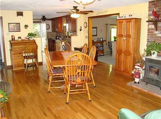 Picture perfect t-shaped ranch with awesome cathedral great room with skylights; 2 full baths, new cherry kitchen cabinets and granite counters. Gleaming hardwoods. Neat, clean and ready to move in! Beautiful grounds; plenty of room for garages!