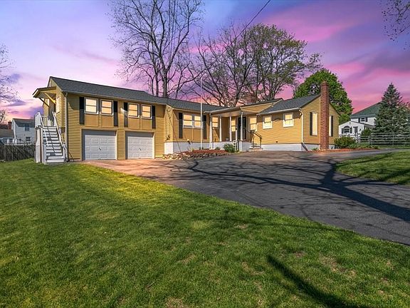 This sprawling 3-4 bedroom, 2 bath Ranch located on 0.32 acres has a New oil fired heating and hot water system. The home has a spacious eat-in kitchen w/granite counters.The bright, bonus room above the garage,has recessed lighting,and sliders out to a private entryway w/ composite decking and stairs.There is a dual wood burning fireplace in the living room and den.The Primary bedroom has a 3/4 bath and hardwood flooring.The house has many other features including central air, wainscoting, coffered ceiling, central vac and the walkout basement has storage,a cedar closet, a family room, laundry and a workshop. Showing begin on Friday May 10th @ Open House 4:30pm-6:30pm. Join us also for an Open House on Saturday May 11th 10:am-12:00pm