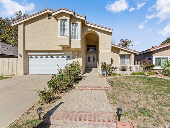 Welcome to this beautiful 4 bed 2.5 bath pool home in Phillips Ranch. Enter through the double doors into the inviting and spacious formal living and dining room with high vaulted ceilings and beautiful tile flooring. The kitchen has maple cabinets with granite countertops and stainless steel appliances with an island. The perfect nook area off the kitchen opens to the bright family room with brick fireplace, recessed lighting and access to the backyard. Master en-suite with double sinks and walk in closet has a huge balcony that overlooks the pool and spa. Three additional bedrooms complete the second floor. Attached 2 car garage with built in storage cabinet, with direct access and plenty of drive way space. A separate laundry room completes this traditional home. This home in a quiet neighborhood with hiking trails and a park that awaits you.