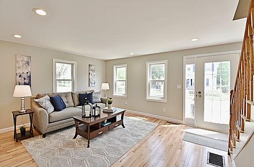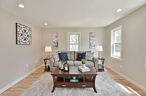 A great TURN-KEY home built in 1890 but JUST RENOVATED with MODERN updates throughout. Beautiful, sunny eat-in kitchen with all new kitchen cabinets, granite countertops, stainless steel appliances (GAS OVEN), stainless steel FARMER'S SINK, stainless steel EXTERIOR VENTED hood and white subway tiled backsplash. 1st floor hard wood floors. New lighting throughout home including recessed lighting, bathroom fixture and ceiling mounted lighting! New interior paint in today's color palate throughout the entire home with accent colored walls. New bathroom vanity and floors. New laminate floors in the upstairs bedrooms. First floor has a flex space that could be a main level 3rd bedroom, home office, play room, craft room or anything you want. Huge shed in rear yard with electric for a workshop, potting shed or other possibilities! Large, flat FENCED-IN YARD. CONVENIENT to 495, Rt 20, Apex Center, Solomon Pond mall, new restaurants and shopping as well as sought-after AMSA