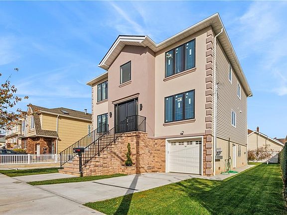 Introducing an exquisite new construction property that epitomizes unparalleled quality and craftsmanship. This luxurious condo residence spans over 2,400 square feet, meticulously designed with attention to every detail. As you enter, a grand double door opens to a stunning two-story foyer. The home boasts three spacious bedrooms and three beautifully tiled bathrooms, including a private master suite with a 3/4 bath. The soaring 9-foot ceilings, four separate heating, and three air conditioning zones ensure year-round comfort, featuring baseboard hot water heat and central air. Anderson windows and high-grade imported hardwood floors further enhance elegance. The custom open-space eat-in kitchen is a chef’s dream, complete with a granite center island, subway tile backsplash, and stainless-steel appliances. The ground level offers nearly 900 square feet of open space with a side door, perfect for transformation into an additional area. The second level includes an inviting entry foyer, coat closet, living and dining rooms, a half bath, and a kitchen that opens to a spacious deck. Here, you can enjoy breathtaking views of the Verrazano Bridge and access to a tranquil backyard, ideal for outdoor leisure or dining al fresco. The third level is home to the master suite and two generously sized bedrooms that can comfortably accommodate queen-sized beds and additional furniture. A shared spa-like full bathroom completes this level. Extra storage space is available in the attic. Situated in a prime location close to the Verrazano Bridge, this condo offers easy access to the famous South Beach, perfect for sunbathing and swimming. With no flood insurance required, this property combines luxury and practicality in a rare offering for today’s market.