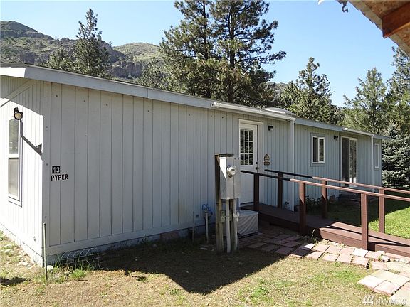 3 bedroom, 2 bath manufactured home on .60 acre lot with covered parking, wheel chair ramps, large deck, storage building, nice yard, quiet setting in Crumbacher south of Tonasket. This home has many nice features and a floor plan that is sure to please.