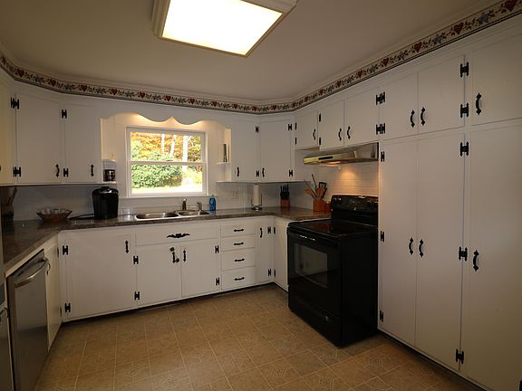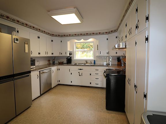 Sitting up on the knoll, getting bright southern light, this four bedroom two bath colonial with attached two car garage built in ( 1965) is set way back off of a dead end road providing privacy. There are fruit trees, a koi pond with gold fish, perennials, and lots of space for more gardens and outdoor adventures. The house has large front to back living room with wood burning fireplace and hardwood floors, open to the dining room with slider out to the back yard; updated kitchen with tile backsplash; first floor laundry / mudroom with another slider to the back; full bath with large walk in shower and first floor bedroom or den. Upstairs there is a front to back primary bedroom plus two others and full bath. Private water and sewer, partially finished basement with woodstove, updated heating system. Adjacent to this property MLS# 4975697 is another lot with 12.42+/-acres of established blueberry farm being sold separately but an accessory dwelling unit could be added to this with approval by the town.