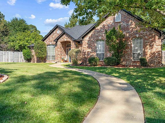 NEW ROOF AND GUTTERING JUST COMPLETED and ideally situated in the Briarwood Addition in Kilgore, TX. This charming 4-bedroom, 2 bath residence is in a very quiet neighborhood and is ready for you to make it your own. The separate Main bedroom and 4th bedroom/office are on one side and 2 bedrooms on the other side of the house. As you enter you will find a room that can serve as either a formal dining room or office. The living room features a cozy fireplace and seamlessly connects to the dining and kitchen area. The kitchen features an inviting eat-in bar. Each bedroom is enhanced with additional lighting, fans, generous closets, and all have been recently painted. The flooring in all rooms is either stained concrete, tile or laminate floors, no carpet here! The main bedroom and bathroom are a relaxing retreat, complete with dual vanities, a walk-in shower, a large soaking tub, and an expansive walk-in closet. The laundry room features built in cabinets with plenty of storage. The 2-car garage has built in storage cabinets, windows and electric door opener. The outdoor amenities are a highlight of this property. The private, fenced backyard is a serene oasis, ideal for unwinding after a hectic week or entertaining groups of any size. This area includes: In ground gunite pool with waterfall, with a walk-in ramp entry and graduated depths with a nearby pergola. 12’ x 20’ She shed/man cave/playhouse that is beautifully finished inside, has lots of windows with many electrical outlets, work bench areas, and an AC/heating unit that is the perfect location for hobbies or projects. Shaded stone fireplace and walkway. Huge 18 x 29’ cement shaded patio bordered by a short brick wall, accent lights, and an electrical connection for a hot tub. 8’ x 11’ storage shed with a storage cabinet, window and locking metal door.