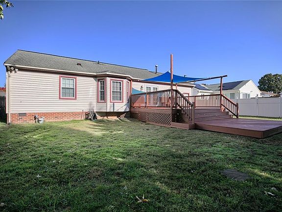 Beautiful rancher in Hampton. Living room and dining room with hardwood floors. Kitchen with breakfast bar, tile floors, granite countertops, and stainless steel appliances. Primary bedroom with two closets including a walk-in and adjoining full bath. Bedrooms are all good sized. Large backyard with multi-level deck is great for entertaining. Deck has just been restained. Storage shed. Attached 1 car garage.