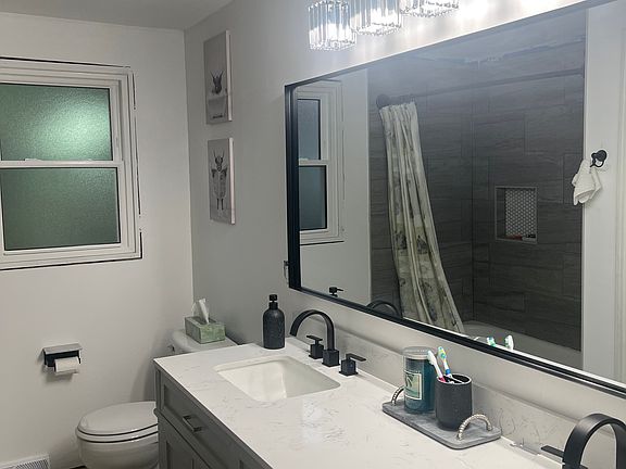 New garbage disposalTwo car attached garageStainless steel appliancesFresh paintDouble sink marble vanityNew doorsHalf basement