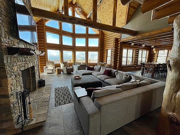 This stunning log home, located beside Shays Revenge ski slope, is mountain living at its finest! Now available for you to purchase for your mt home. Ski in from the slopes, drop your skis in the large equipment room, and join your friends and family around the outdoor, floor to ceiling fireplace. This 8,177sq/ft log home is THE premier home at Snowshoe. True ski in, ski out property, this home features everything you'd expect in a retreat: stone fireplaces, main floor en suite bedroom, 4 BR's w/ en suites, & lg Bunkroom. Theater & game rooms, home office, 2 great rooms w/ huge log accents, hardwood floors. The kitchen dining area is designed for grand family gatherings. Radiant floor heating system for those chilly mornings. 1 BR guest house. See photos, videos, virtual tours. Click MOR