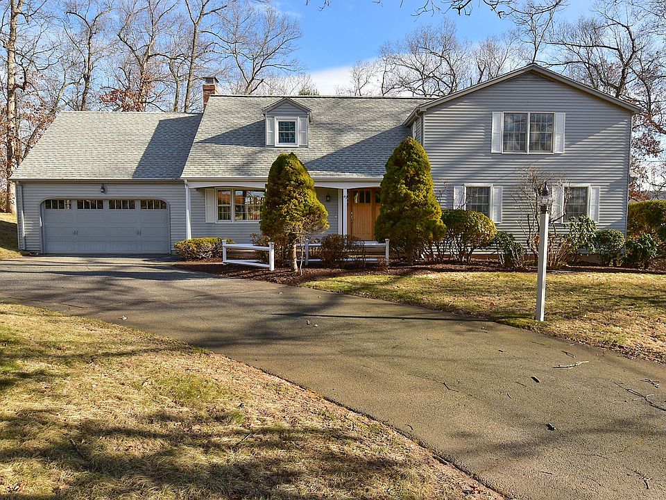 Exquisite contemporary on a 1.13 acre lot at the top of a cul de sac. The front to back light and bright living room has a beautiful wood burning brick fireplace making those cold winter nights very cozy. Formal dining room with open concept to living room and door to close off to kitchen.The large kitchen with granite countertops can be used as an eat-in kitchen or casual entertaining area. There is a sliding glass door leading to a large deck engineered to hold an enclosed room and is a lovely place for plants and flowers and relaxing while enjoying views of the serene, wooded spacious, backyard with room for a pool. The main floor includes a large room that can be used a first floor master, den or office. It is next to a bathroom with connections for a walk in shower, tub and hookups for a washer/dryer. There are also washer/dryer hookups in the basement. The three upstairs bedrooms are all oversized with large windows, ample closet and storage space. There are 2 bathrooms upstairs .The master has an en-suite with additional access to the hallway. Additional features include hardwood floors in most of the house. There is central air, a whole house generator, security system, attic fan, a walk out basement with an oversized slider. The large basement can easily be finished.