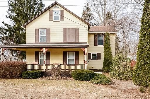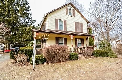 Welcome to this charming old style Colonial. You'll enjoy the amazing wrap around porch which also expands to a large deck overlooking the very private back yard. A large dining room with gas stove connection, newer kitchen, living room with slider to large back deck, and half bath with laundry make up the first floor. Master with large walk-in closet, two additional bedrooms and full bath on the second floor. The walk-up attic is enormous for all your storage needs. Two large sheds for additional storage and lawn equipment. Newer gas boiler, hot water heater, roof, Harvey windows, insulated and waterproofed crawl space under kitchen.