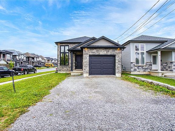 This wonderfully updated raised bungalow is located in a thoughtfully designed, newly developed neighbourhood that offers both modern appeal and a strong sense of community, offering three bedrooms and two bathrooms that seamlessly blend modern design with timeless comfort. Surrounded by other elegant homes, the property stands out with its striking solid grey stone exterior, creating exceptional curb appeal and a lasting first impression. Inside, every detail reflects high-end craftsmanship, from the sleek flooring and tasteful lighting and premium fixtures that elevate each room. The main level features a bright, airy living room, a stylish chefs kitchen with contemporary cabinetry and a walkout to a private covered porch perfect for morning coffee or evening gatherings, two spacious bedrooms, and a well-appointed three-piece bathroom designed with both beauty and practicality in mind. The lower level continues the sense of luxury with a generous third bedroom complete with a walk-in closet, a spa-inspired bathroom boasting a six-foot shower with dual showerheads and elegant double sinks, a convenient utility and laundry area, and clever under-stair storage. A separate walkout leads to the backyard, offering privacy and endless possibilities for outdoor enjoyment. With the added potential to convert the lower level into a private suite or duplex for extended family or rental income, this home combines elegance, functionality, and exceptional value. Set in a quiet, modern neighbourhood, it presents a rare opportunity to enjoy the benefits of new community living while indulging in a truly move-in-ready, beautifully upgraded residence.