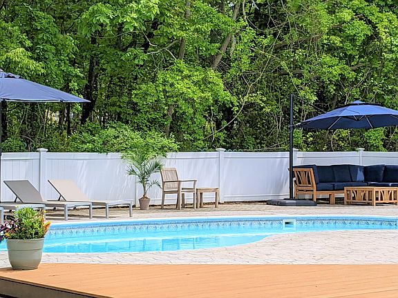 Rental Registration #: RP240820 The Best Southampton Has to Offer - 43 Scotts Landing Road in Southampton Shores. This charming, recently renovated, community home consists of 3 bedrooms, with a large primary en suite bedroom on the first floor, plus 2 additional bedrooms upstairs surrounding an open loft and a second bathroom. The upstairs has a second area to hang out in or work from remotely, with 2-monitor work station with high speed wifi. A crib is also available upon request. The kitchen is fully stocked and has brand new dishwasher, fridge and quartz countertops. Laundry room recently updated with new appliances. Linens and towels included and all bedrooms have TV's. During your stay, you can relax indoors, in the large family room with a 75" TV, or outdoors, on the covered porch in a rocking chair or go swimming in its own heated in-ground pool. The pool has generous seating and brand new lounge chairs plus a beautiful 8-seat teak dining table for all outdoor dining. Bring your sports equipment and you can also play tennis in one of three courts, or head to the bocce or basketball courts. You will never be at a loss for activities. Go kayaking on the Peconic Bay and access just minutes away to a private community beach and pavilion. See floorplan. You never have to leave beautiful Southampton except for exceptional dining and shopping in the village.