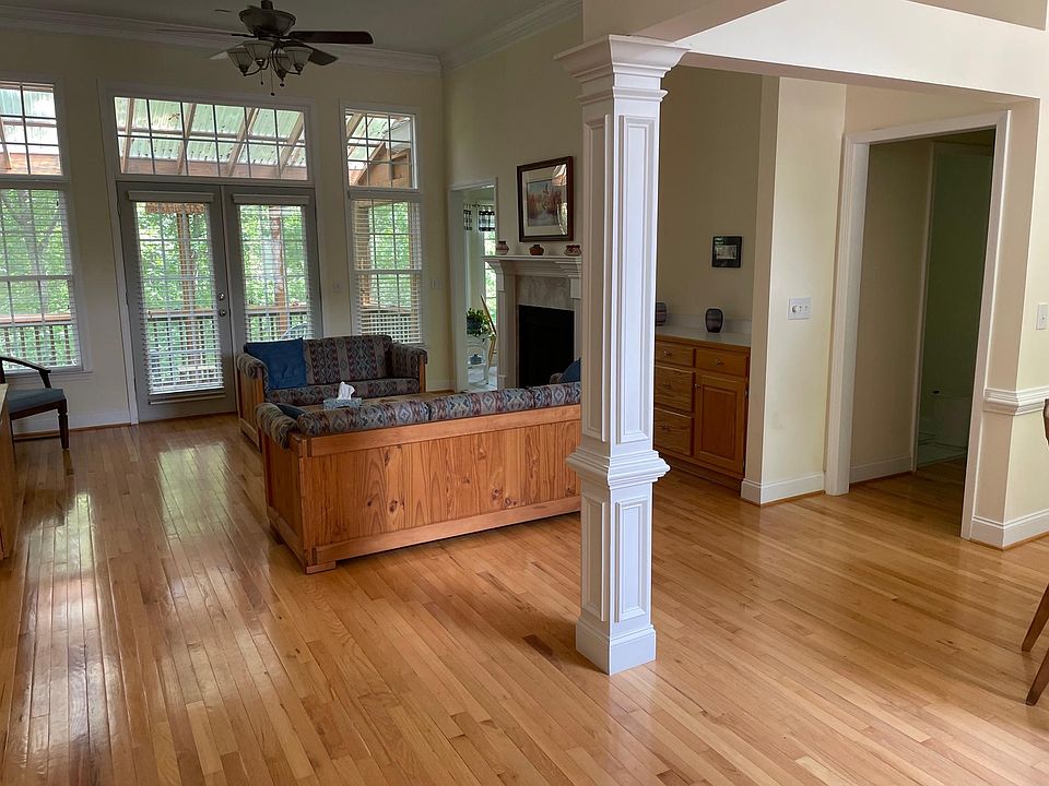 Open floor plan with spectacular views. Screened in porch with mountain views, bonus room and 2 car garage. Hardwoods in main living areas and partially finished basement. Renter pays all utilities.