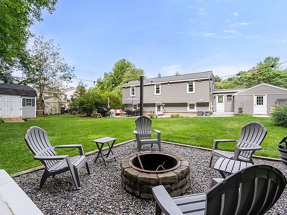 Stunning and fully renovated from top to bottom, this multi-level home offers modern living in one of Burlington's most desirable neighborhoods. The first floor features vaulted ceilings, an open-concept layout, and a beautifully updated eat-in kitchen with granite countertops, stainless steel appliances, and tile backsplash that flows into the fireplaced living room with gleaming hardwood floors. A brand-new mudroom addition (built in 2020) offers ample storage when you first walk in. Upstairs, find three bedrooms with hardwood flooring and a remodeled full bath with elegant ceramic tile. The renovated lower level (2019) provides a spacious family room, laundry area, updated half bath, and a versatile bonus room with walk-out access to the backyard. Outside, enjoy the oversized, fully fenced, wooded yard with a garage, an Eastern shed, and a new concrete patio and fire pit area-perfect for entertaining. This move-in ready home blends style and convenience in one exceptional package.