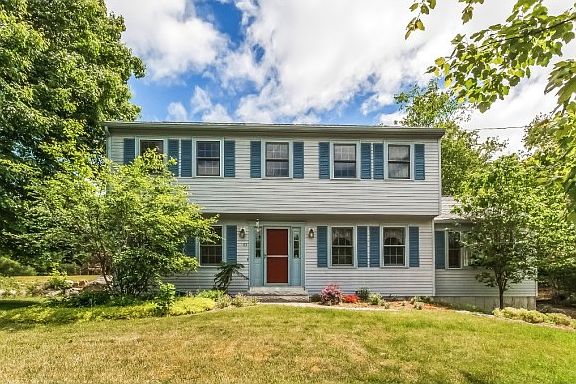 Goffstown's favorite neighborhood is home to this beautiful 4 bedroom, 2.5 bath, 2,252 sq ft Colonial. Many updates include new hardwood in family, living, dining and entry; new carpeting 2nd floor;new granite steps & paver walkways front & back; new paint in main rooms. 1st floor entry has adjoining formal dining and formal living rooms. Making dinner is a breeze in the spacious 22x12 eat in kitchen. Off the kitchen is a 22x14 cathedral ceiling family room with wood burning fireplace, Palladian window and ceiling fan. 2 laundry hookup options, 1st floor & LL. Off the 2nd floor landing are 4 bedrooms and a main bathroom. Master bedroom has full bath and 2 closets. The .6 acres is beautifully landscaped with flower gardens a large back deck area for entertaining. House has central A/C, propane FHA heating, french perimeter drains, town water & sewer. Walk 5 minutes to downtown restaurants, schools and many Village activities yet only 17 mins to Manchester & Bedford. A must see property