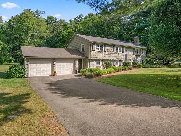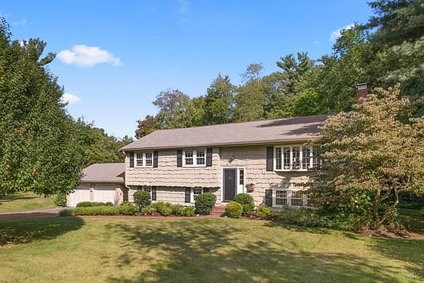Located in a desirable neighborhood within Martha Jones School district, this well-maintained oversized 2600 S.F. split level home sits on a wooded acre. Features include custom red birch kitchen cabinets, hardwood floors on main level, 2 fireplaces, central air, 4 bedrooms and 3 full baths. Exterior French doors from the dining room lead to an inviting 3-season sunroom that opens to a freshly painted deck for easy access to the outdoors. An entry to the ground level connects a 2-car garage via mudroom leading into a spacious recreation room with a gas stove. The fireplaced family room & adjacent 4th bedroom with full bath are ideal for in-law/au pair setup or overnight guests. Off the rec room is a workroom with plumbing that could be converted to a kitchenette. Westwood offers top schools, Hale Reservation, University Station shops & restaurants, 2 commuter rail lines into Boston including Amtrak, is near Dedham's Legacy Place. Showings begin at OH Saturday 3-4 & Sunday 12-2 PM.