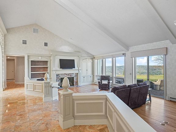 Welcome to 43 Sterling Place! This stunning custom-built ranch is nestled on over 6 acres with 5,000+ sq. ft. of living space. Enter into the marble foyer and expansive living room featuring vaulted ceilings and breathtaking mountain views. The enormous chef's kitchen includes granite counters, an eat-in area, newer appliances and ample space for gatherings. The primary suite features a spacious dressing area, walk-in closets, and a luxurious bath with a walk-in shower, jacuzzi tub and laundry area. Two spacious guest bedrooms, each with its own bathroom, ensure privacy and comfort. The LL offers room for expansion, a family room, workshop and storage space. Enjoy amazing sunsets inside or outside, where you'll find multiple entertaining areas, a pond and abundant space. This meticulously maintained, single-level home also includes new hardwood floors, newer appliances and a freshly painted exterior. Plus a 3 car attached and 3 car detached garage. You'll love this one!