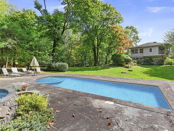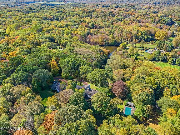 Exceptional 6.5 acre country compound located in a private gated association in Greenwich. This bucolic property unfolds with so much to offer. Manicured lawns, mature plantings and vistas complement the amenities which include a pool & spa, pool house, tennis & basketball courts & art studio or apartment. The home has a masterful blend of timeless architecture with hipped roofs, horizontal lines & well situated windows that seamlessly integrate with the natural landscape. The sprawling 9200 square foot home offers high ceilings & spacious formal and informal rooms, which accommodates both intimate family gatherings and grand parties. Enter via a double height grand foyer with curved metal railed staircase & you will see marble and wood floors, great wall space for displaying art. First floor offers a large living room with greenhouse area, dining room, primary suite with adjacent office, gourmet kitchen, family room and access to different outdoor patios and decks. The second floor offers another luxe primary suite, several bedrooms and a great room with beamed ceiling. Bonus: koi pond with waterfall, vegetable garden area, office spaces, 5 garages and generator. Conveniently located to schools, highways and an easy drive to downtown Greenwich and train.