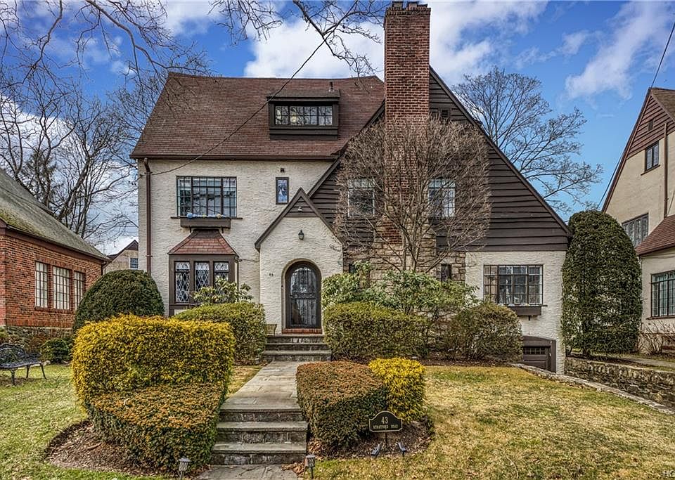 Welcome to 43 Stratford Road. This meticulously maintained Tudor style home situated in the desirable north end section of New Rochelle will satisfy all items on your checklist....A beautiful and impressive living room with fireplace and quality built-in shelving that leads into additional den/lounge area...A dining room ready for all your holidays and dinner guests....An extremely well-laid out eat-in-kitchen opening up to family room with spectacular windows bringing the outside in with smooth access to the backyard patio...Three well and adequate size bedrooms (including master bedroom and bath) on the second floor...Two more well-sized bedrooms on the third floor! This home will give you open space for all your entertaining needs yet offer refuge to those who need private space. Truly something for everyone. Conveniently close to houses of worship, shopping, schools and transportation.