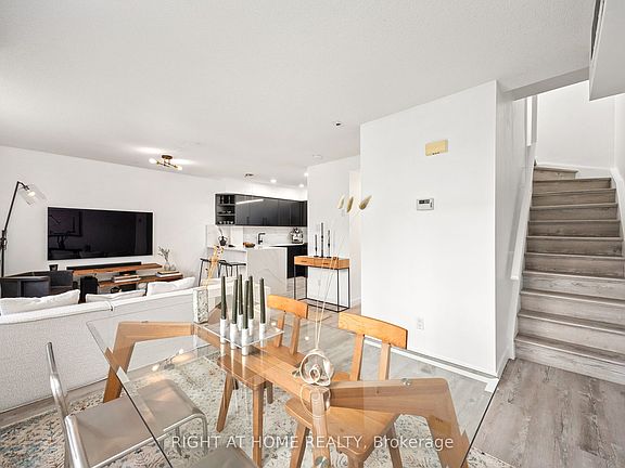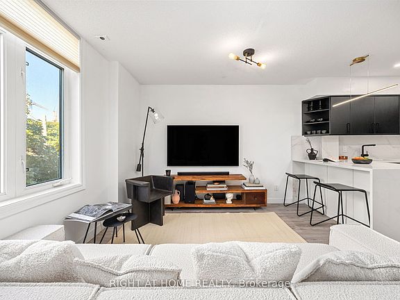 A showcase of modern design, this fully renovated 3-bedroom, 2-bathroom townhouse has been reimagined in 2024 with an eye for detail and style. The chef-inspired kitchen features sleek quartz countertops, a continuous backsplash, and black appliances that create a striking contrast against clean lines and open space. Bathrooms have been elevated to spa quality, including a hotel-inspired main bath with black fixtures, sophisticated tilework, and a calming aesthetic. New flooring (2024) runs seamlessly throughout, enhancing the flow of natural light and emphasizing the homes contemporary palette. The private rooftop terrace offers a perfect vantage point for iconic CN Tower views. Designed for both form and function, this home balances minimalist elegance with everyday livability. Private parking completes the package, ensuring convenience without compromise. A rare opportunity to own a thoughtfully curated residence that embodies a modern design ethos.
