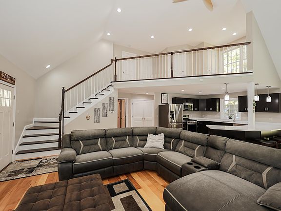 Welcome to your dream home—where custom craftsmanship meets serene privacy on a beautifully wooded 5.01-acre lot. From the inviting farmer’s porch, step into a sun-drenched open-concept living space that seamlessly blends the kitchen, dining, and living areas. The fully applianced kitchen features Corian countertops, breakfast bar, spacious double-door pantry, and French doors that lead to a large deck and pool. The living room showcases a stunning feature wall with an electric fireplace, cathedral ceiling, and rich 5" ambrosia maple hardwood flooring that adds warmth and character. The first-floor primary suite offers a thoughtfully designed custom bath and convenient laundry room. Upstairs, you'll find 3" ambrosia maple hardwood floors throughout, a versatile loft ideal for a home office or lounge, a second bedroom, additional office, and full bath. Bonus room above the garage accessible directly from the living room—provides even more flexible space for a bedroom, studio, or workspace. Additional highlights include: Radiant heated floors and abundant recessed lighting throughout Full unfinished walkout basement with double doors for easy access. Expansive outdoor living with a firepit, above-ground pool, and hot tub. Oversized garage with direct entry and lift installation potential All this, plus a top-rated school system and convenient access to highways and all that Hopkinton has to offer. This property is the perfect blend of comfort, functionality, and outdoor fun!