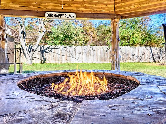 Primary suiteRock koi waterfallDouble walk-in closetsCovered patioDual vanitiesGas fire pitCozy gas fireplace