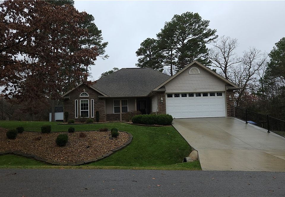 Beautiful Bella Vista home surrounded by nature and packed with charm! Enjoy a bright, open layout with soaring ceilings, a cozy fireplace, and stunning arched windows that flood the living space with natural light. The updated kitchen features crisp white cabinetry, solid-surface counters, tile backsplash, and a cheerful dining area. The spacious primary suite offers vaulted ceilings and a relaxing en-suite bath. Two additional bedrooms provide great flexibility for guests, office, or hobbies. Step outside to your private backyard oasis with a large deck and screened-in porch overlooking mature trees — perfect for entertaining or peaceful mornings with coffee. Fenced yard for pets! Convenient single-level living with a level driveway and two-car garage. Located minutes from world-class amenities: lakes, golf, trails, recreation centers, pools, and more! Move-in ready and in a fantastic location — come enjoy the Bella Vista lifestyle!