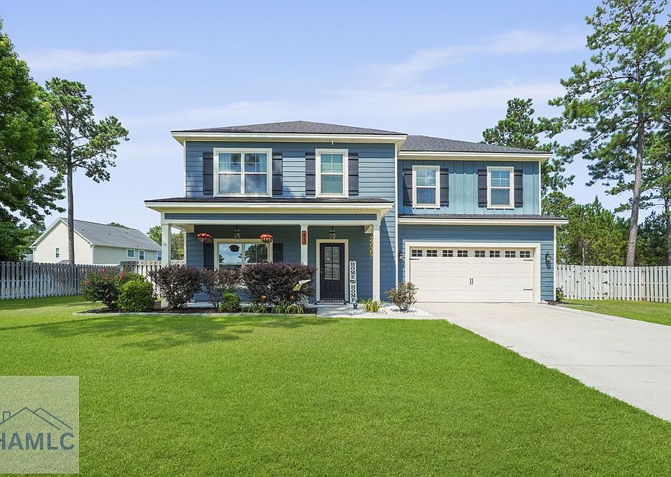 Welcome to 43 Timberland Trail, located in the sought-after Woodland Trail Community! This 4-bed, 3.5 bath home offers charm, comfort, and thoughtful upgrades. The open-concept layout invites you into a spacious living area and gourmet kitchen with granite countertops, stainless steel appliances, and a custom tile backsplash. The dining area features beautiful judges paneling. The mudroom includes built-ins for shoes and backpacks and is next to the half bath, a walk-in laundry room with a storage closet and stained wood countertop, and an oversized two-car garage with a built-in workbench. Upstairs, retreat to a large primary suite with tray ceilings, a spa-like bath, and a walk-in closet with custom-built-ins. Fresh paint in the primary and second en suite adds a crisp, modern feel. Relax on the screened-in porch overlooking a fenced yard. Extras: four-zone irrigation and a new AC condenser. Community amenities: two pools, playgrounds, and RV/boat storage. Built in 2018! Grass in photos is digitally enhanced for marketing.