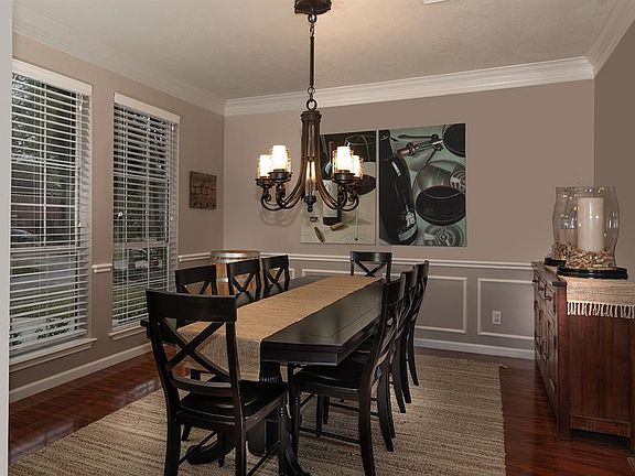 Lovely Emerald home that backs to a lush greenbelt in Alden Bridge! Located on a corner lot on a cul-de-sac street, this home features soaring ceilings, extensive tile floors, crown moulding, art niches, split staircase and plenty of storage throughout. Island kitchen with granite counters and stainless steel appliances opens to sunny breakfast nook; two story den with gas log fireplace; formal dining with chair rail; study has French doors and built-ins; master retreat down; three bedrooms and game room up; private, fenced yard has covered patio, room to play and no rear neighbors! Easy access to Research Forest and 242, close to hike/bike trails, parks, area pool, restaurants and shops!
