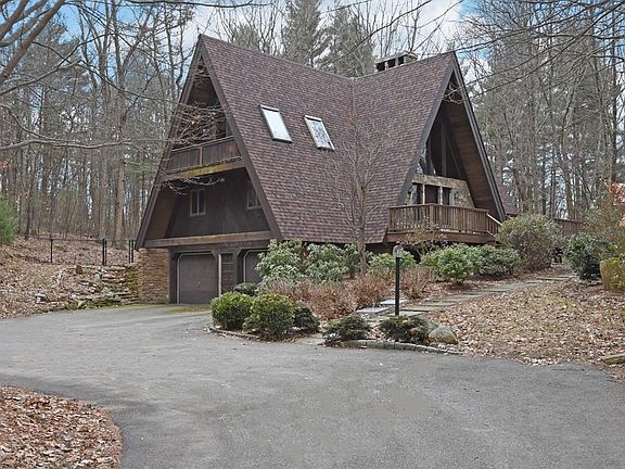 OFFER DEADLINE SUNDAY 5:00 Wait till you see this ONE of a kind, stunning, Contemporary home situated on over 6 acres of privacy! Upon entering you will fall in love with the open floor plan, high ceilings custom woodwork and stonework throughout. A beautiful fieldstone fireplace accents the living room, which opens to the chef's kitchen with high end appliances, marble countertops & a large island, which is adjacent to the dining area. Sliding glass doors in the living room lead to the wrap around deck where you can sit back and take in the chirping of the birds. Down the hall you'll find a full bath & 2 first floor bedrooms! Take the spiral staircase to the 2nd floor where the master suite awaits complete your own private balcony! An add'l sitting area makes for the perfect home office or den & also has its own private balcony. Newer big-ticket items include: Water Heater, Furnace, Roof & Track lighting. A large fenced in area & a 2 car garage completes the package!