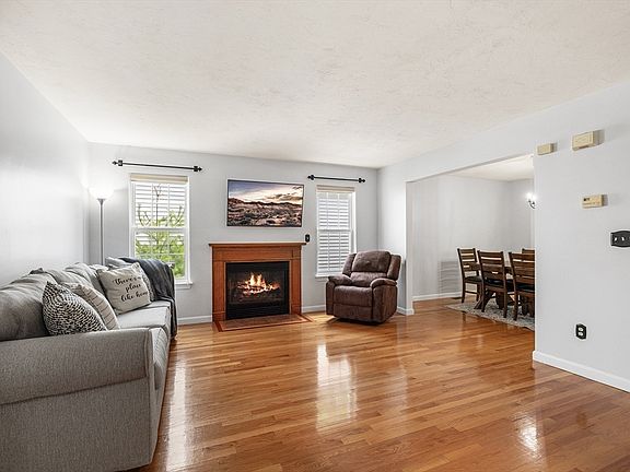 Beautifully maintained home in the sought-after Rose Pointe neighborhood! This gem offers 3BA/2.5 BA, a finished basement, and a private wooded backyard, perfect for creating your own oasis. Nature lovers will appreciate the miles of walking trails that back right up to the property. Enter into the charming covered porch and be greeted by a spacious open living room with a cozy gas fireplace, ideal for those cool evenings. Entertain effortlessly in the adjoining dining room, featuring hardwood floors and an alcove, which flows seamlessly into the stunning, recently renovated kitchen. Unwind in the expansive primary suite with en suite bath boasting double sinks and a walk-in closet. Two additional bedrooms and a full bath complete the upper level. The finished basement is perfect for a playroom, media center, home office, gym, or family room! This location is truly unbeatable, offering excellent commuting options and an abundance of nearby retail and shopping!