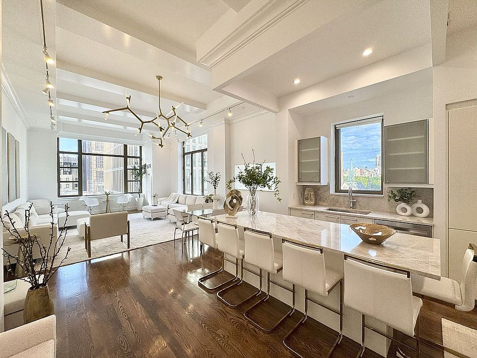 NEW AND RARE! Your search ends here for the ultimate masterpiece two-bedroom penthouse condominium in the finest Westside location next to Central Park and Lincoln Center. Having the grand scale of a prewar mansion and all the conveniences of a contemporary loft, sweeping park and city views from two exposures, soaring 13-foot beamed ceilings, and massive rooms is just the beginning.